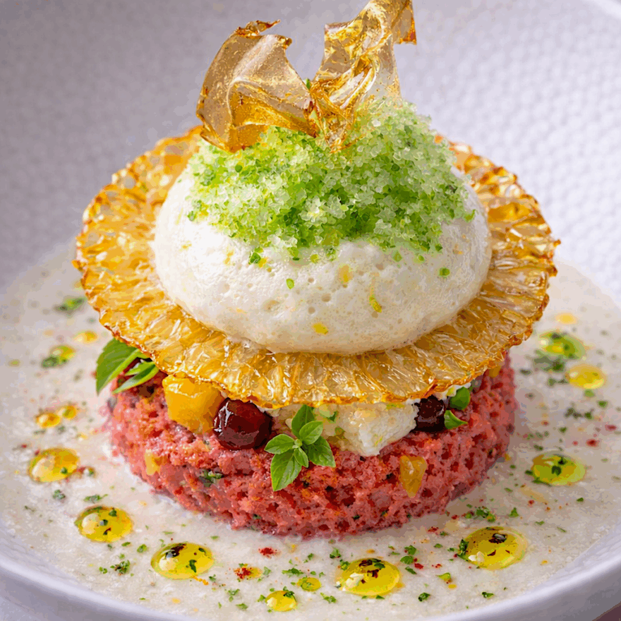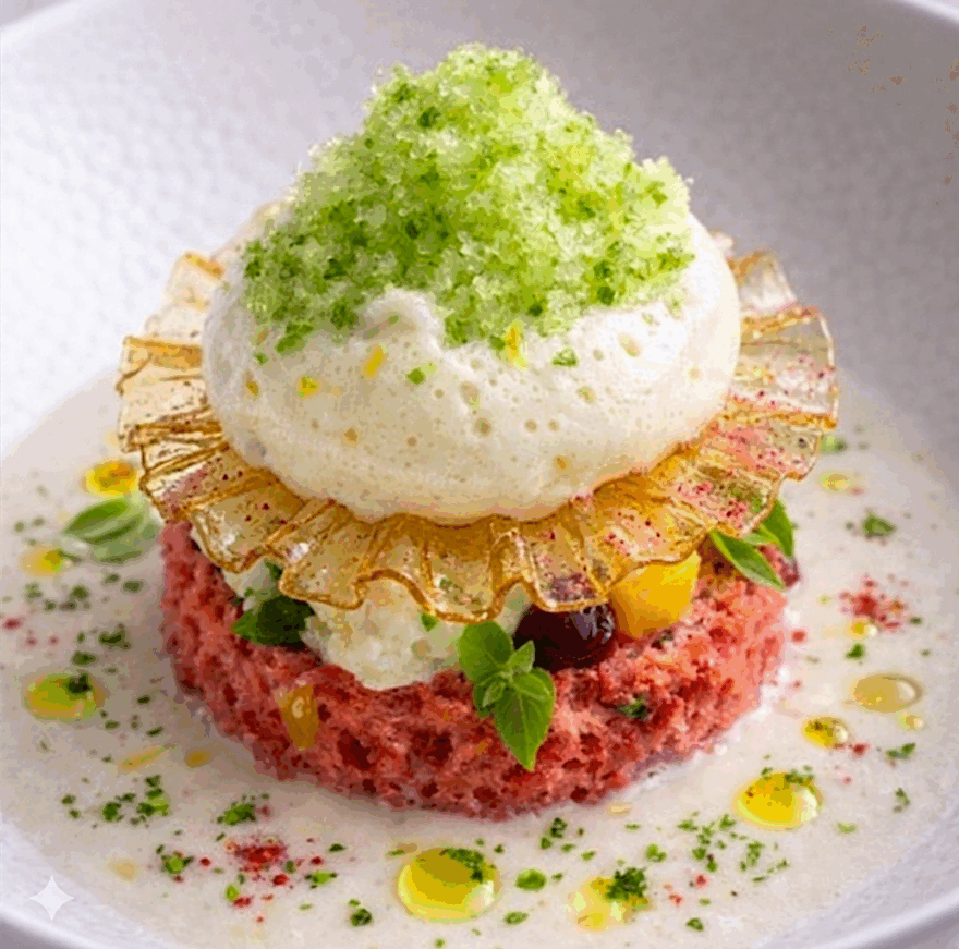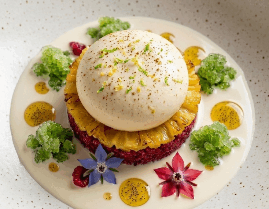 Puedes terminar con golpe de salamandra para caramelizar (puedes moldear con ayuda de un aro y brochetas).