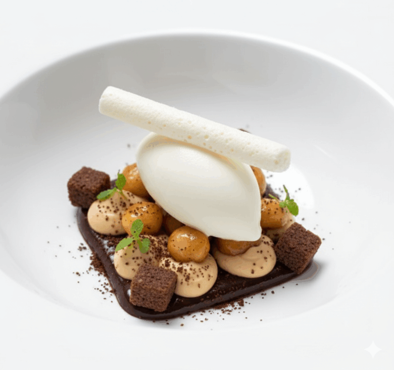 Colocar unso brotes verdes, espolvorea unas migas de poso de café o cacao en polvo y listo.