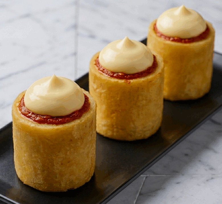 Deben quedar como “tubos” pero con base para mantener las salsas.