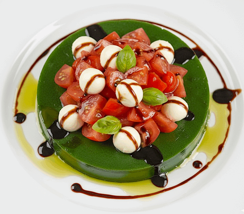 Desmoldar el gelificado de rúcula y colocarlo sobre una bandeja o plato llano.