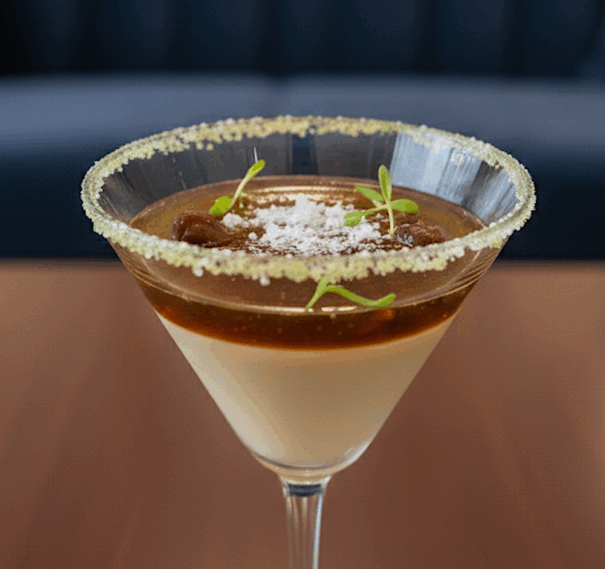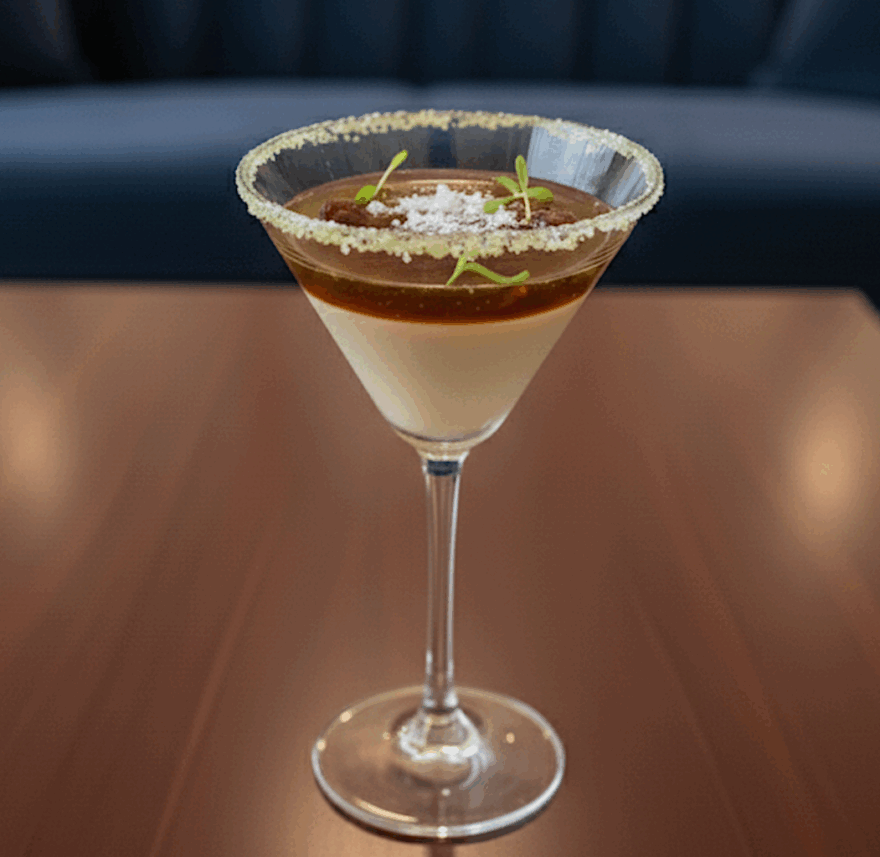 Disponer en el fondo de la copa de cocktail 20-25gr. de crema de foie.