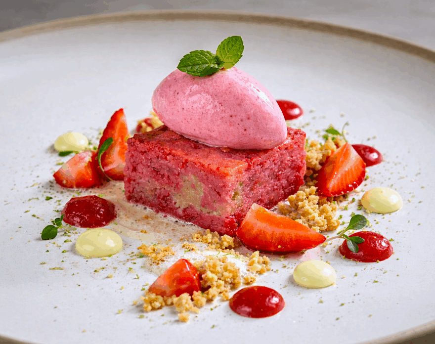 Cocinar fresas con azúcar y el zumo de limón 10–12 min. a fuego medio debe quedar una textura tipo mermelada ligera. Triturar y colar. Esto evita exceso de agua y potencia sabor.