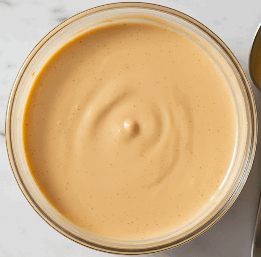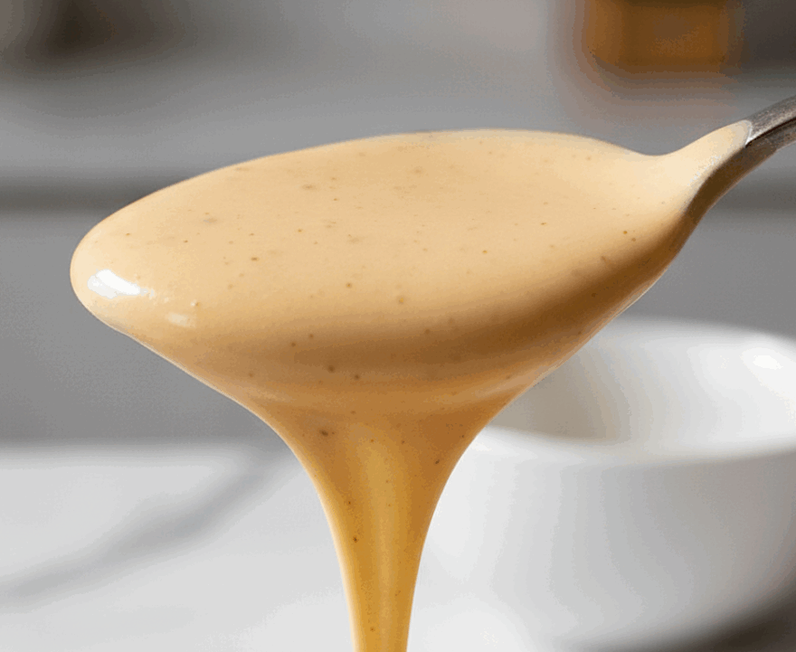 Mantén la salsa tibia (≈ 45-50 °C) hasta el momento de uso. En uso inmediato para verduras, pescado o carne es ideal. Si no se usa al momento, conserva sobre baño de agua tibia.