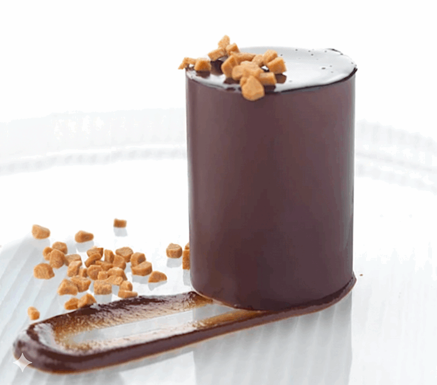 Para la Mousse de Chocolate y Caramelo Salado con Glaseado Brillante: