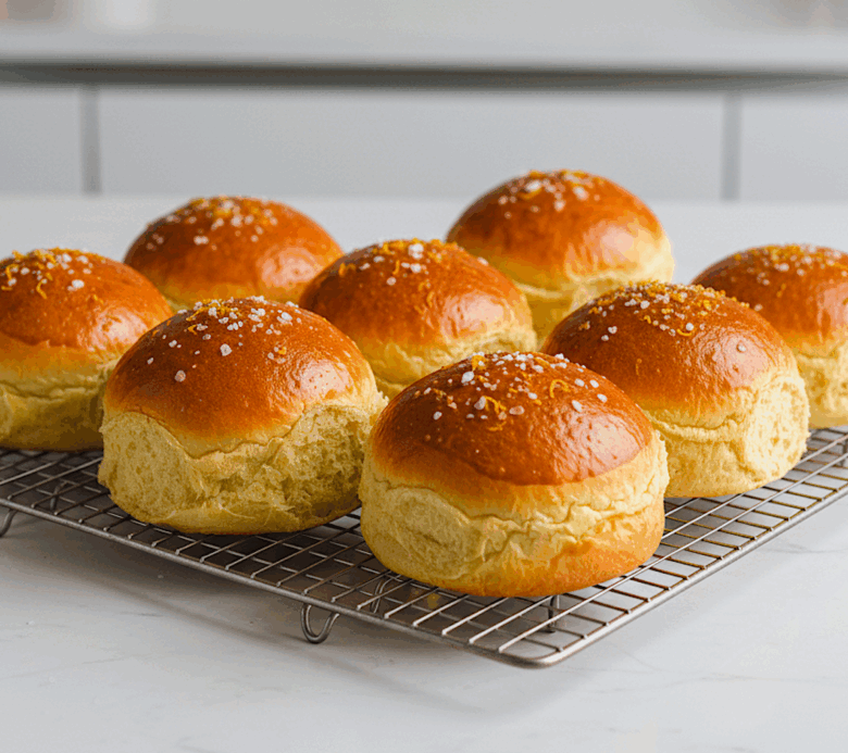 Para un acabado más perfumado, pincela los panes con una mezcla de mantequilla avellanada + ralladura de naranja + flor de sal justo al salir del horno.