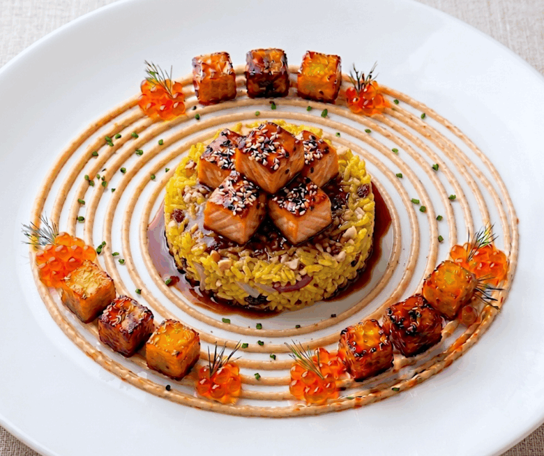Salmón Glaseado con Arroz Jazmín Especiado