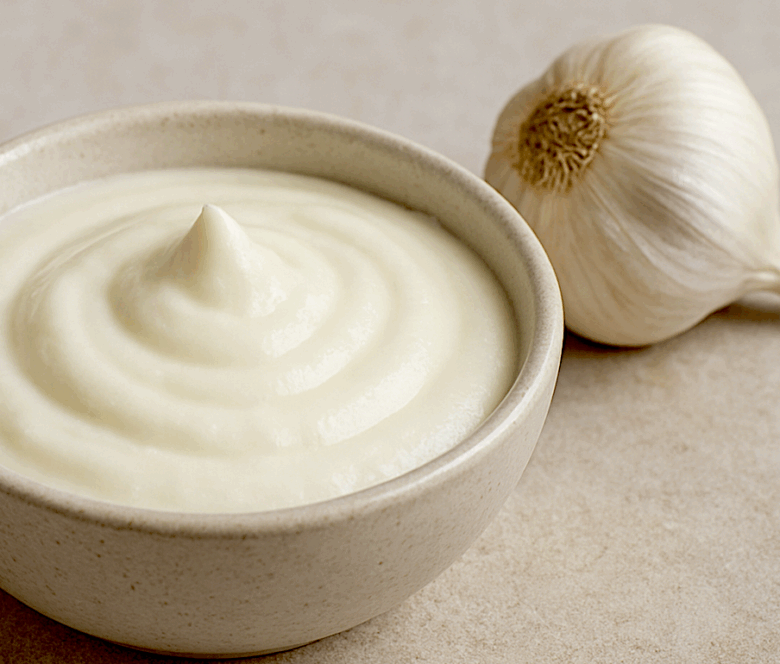 Textura final: El toum debe quedar muy blanco, denso y con aspecto aireado, casi como una mayonesa ligera pero más brillante.