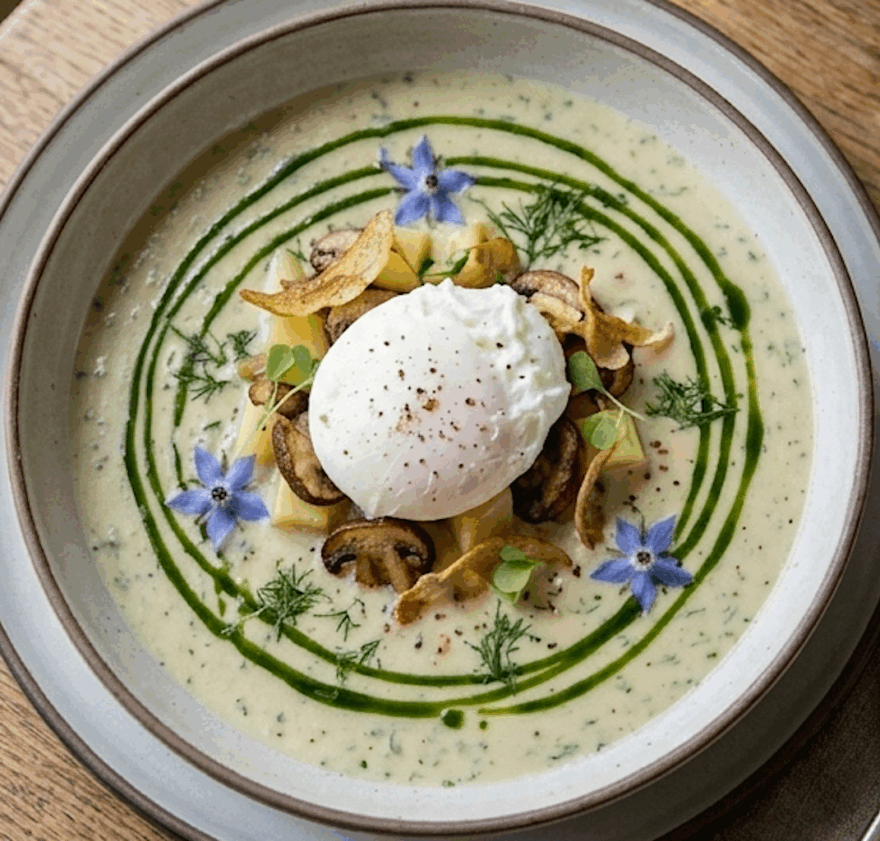 La Kulajda tradicional es ligeramente ácida, pero debe sentirse fresca, no punzante.