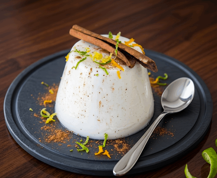 Desmoldar pasando con cuidado un cuchillo por el borde. Espolvorear canela molida, coco tostado y ralladura cítrica muy fina.